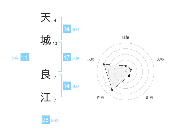 天城 良江さんの総格は28画の1点!