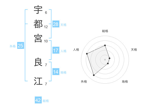 宇都宮 良江さんを姓名の画数から五運を鑑定