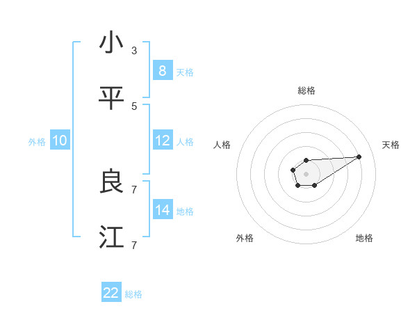 小平 良江さんの総格は22画の1点!