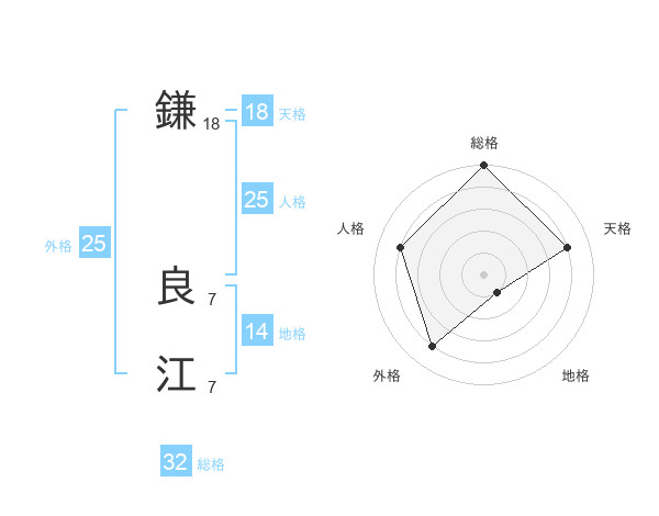 鎌 良江さんの総格は32画の5点!