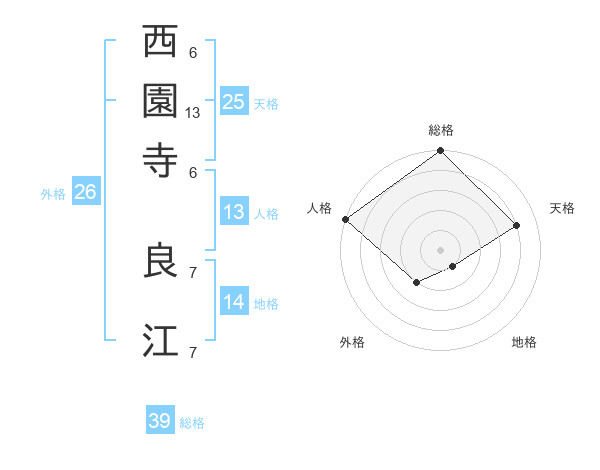 西園寺 良江さんの総格は39画の5点!