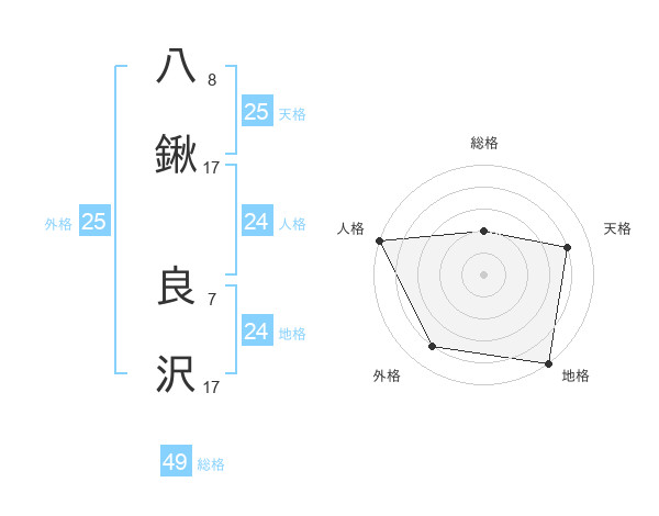 八鍬 良沢さんを姓名の画数から五運を鑑定