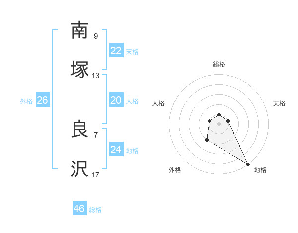 南塚 良沢さんの総格は46画の1点!