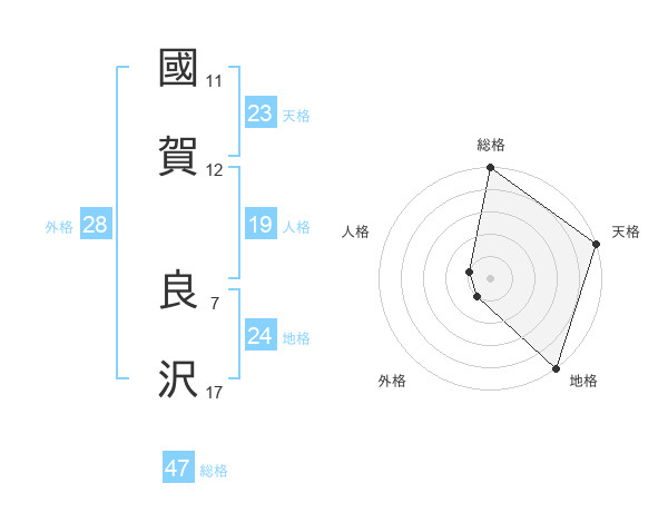 國賀 良沢さんの総格は47画の5点!