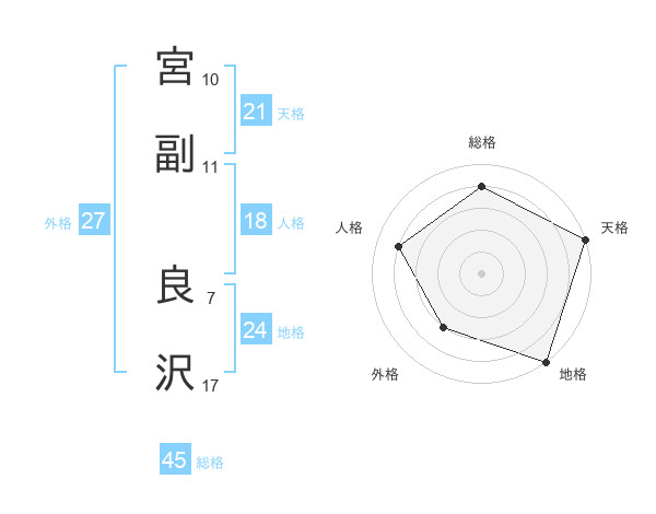 宮副 良沢さんの天格は21画の5点!