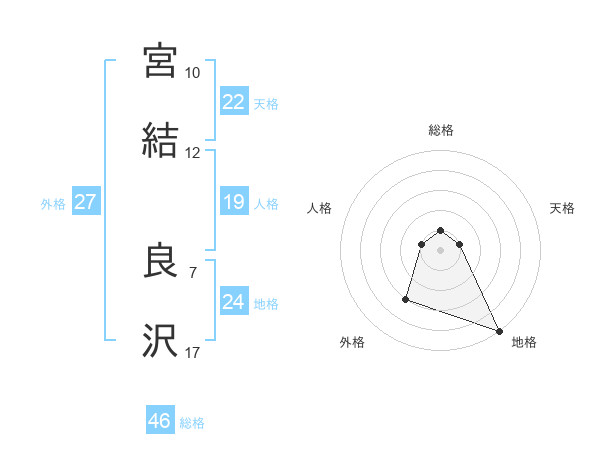 宮結 良沢さんを姓名の画数から五運を鑑定
