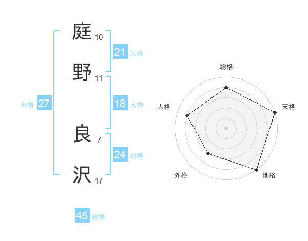庭野 良沢さんの天格は21画の5点!