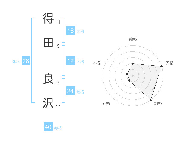 得田 良沢さんの地格は24画の5点!