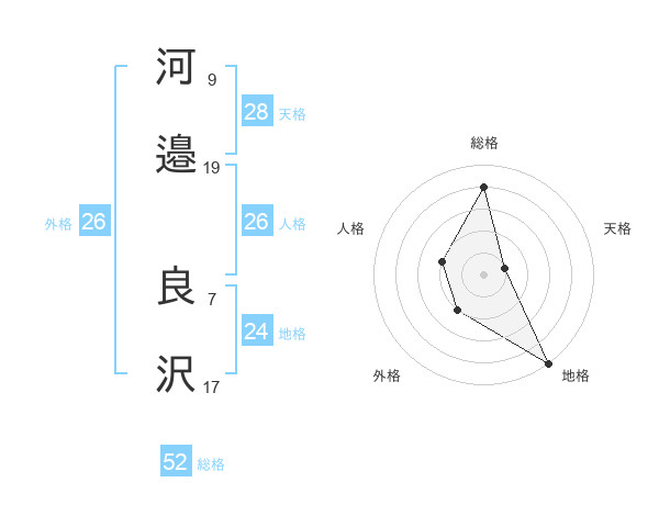 河邉 良沢さんの総格は52画の4点!