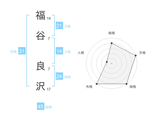 福谷 良沢さんの総格は45画の4点!