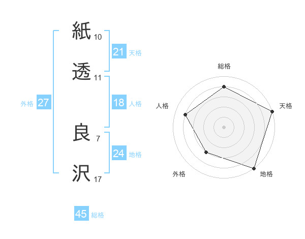 紙透 良沢さんの総格は45画の4点!
