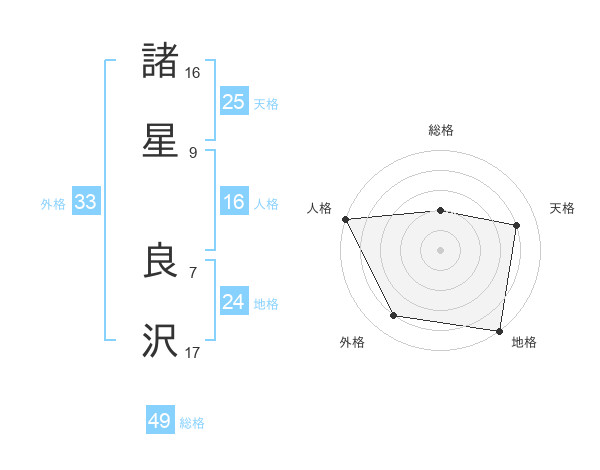 諸星 良沢さんを姓名の画数から五運を鑑定