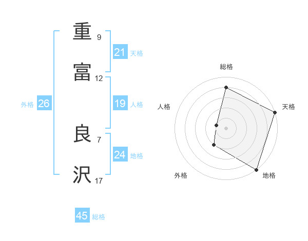 重富 良沢さんの総格は45画の4点!