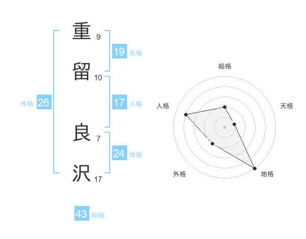 重留 良沢さんの総格は43画の2点!