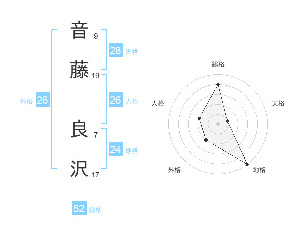 音藤 良沢さんを姓名の画数から五運を鑑定