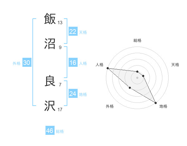 飯沼 良沢さんの天格は22画の1点!