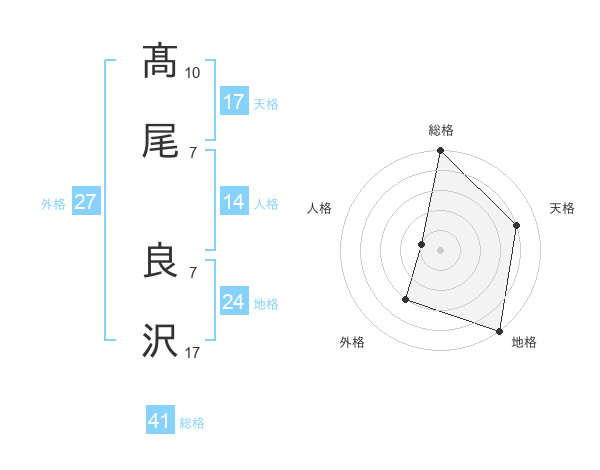 髙尾 良沢さんの総格は41画の5点!