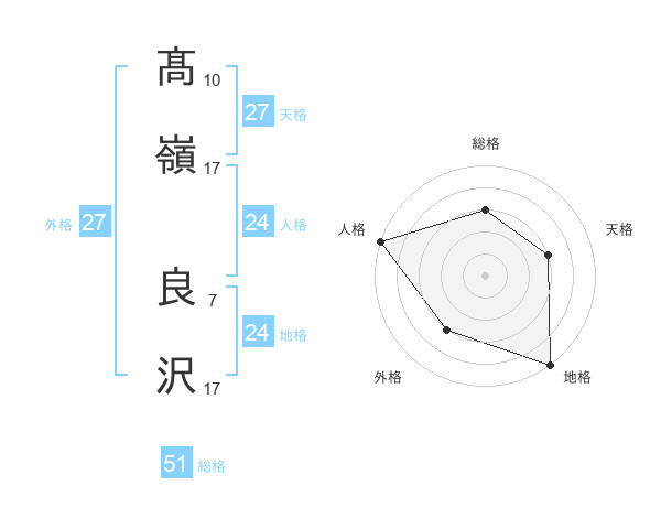 髙嶺 良沢さんの総格は51画の3点!