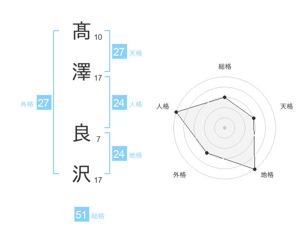 髙澤 良沢さんの総格は51画の3点!