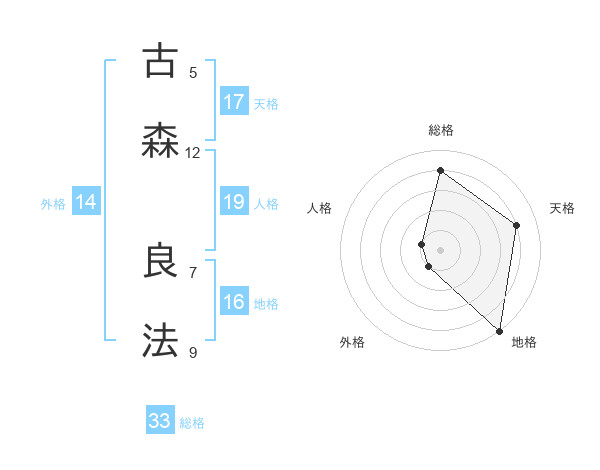 古森 良法さんの天格は17画の4点!