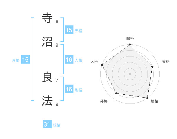 寺沼 良法さんの総格は31画の5点!