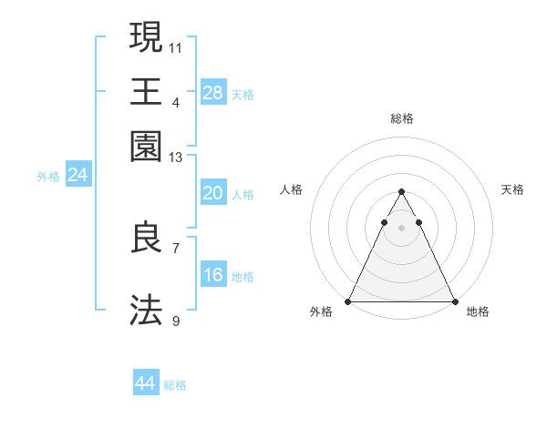 現王園 良法さんの総格は44画の2点