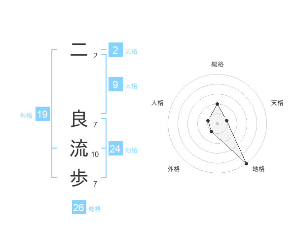 二 良流歩さんの外格は19画の1点!