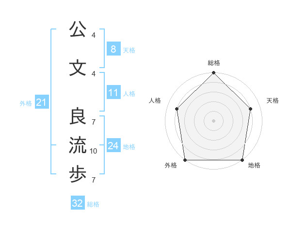 公文 良流歩さんを姓名の画数から五運を鑑定