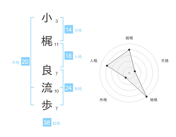 小梶 良流歩さんを姓名の画数から五運を鑑定