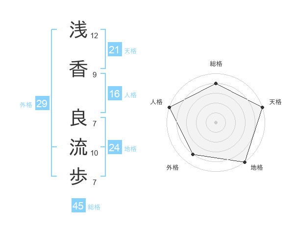 浅香 良流歩さんを姓名の画数から五運を鑑定