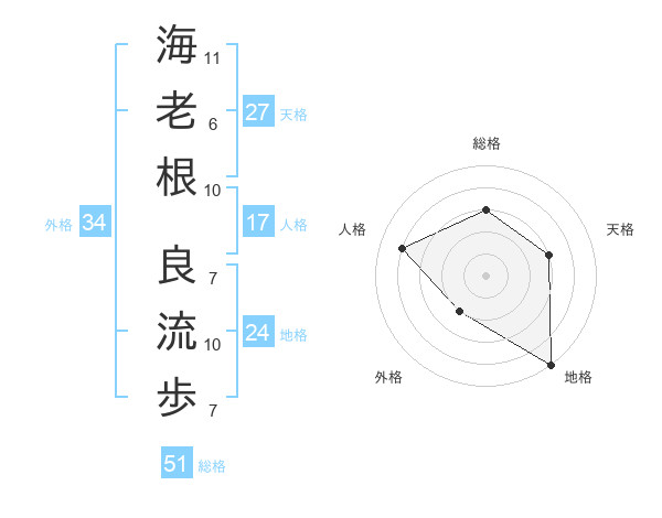 海老根 良流歩さんの総格は51画の3点!