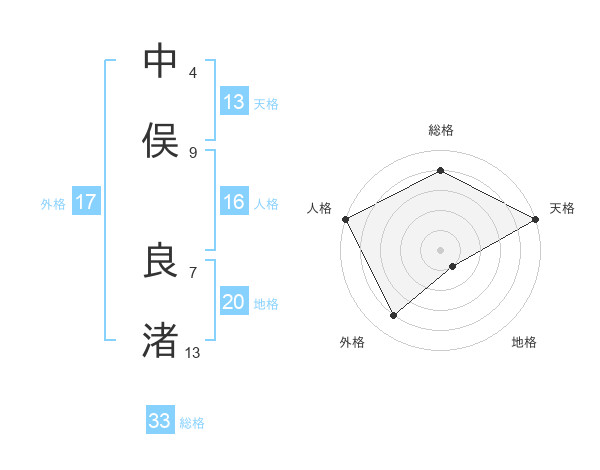 中俣 良渚さんを姓名の画数から五運を鑑定