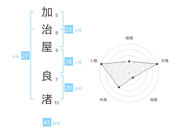 加治屋 良渚さんの天格は23画の5点!