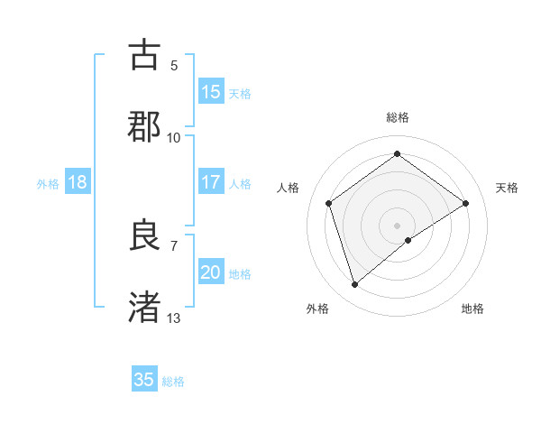 古郡 良渚さんを姓名の画数から五運を鑑定