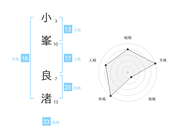 小峯 良渚さんを姓名の画数から五運を鑑定