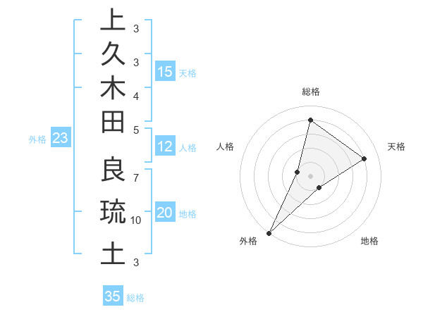 上久木田 良琉土さんの総格は35画の4点!