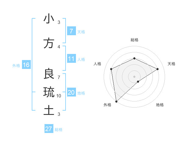 小方 良琉土さんを姓名の画数から五運を鑑定
