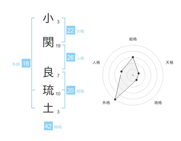 小関 良琉土さんを姓名の画数から五運を鑑定