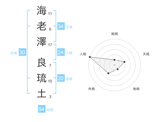 海老澤 良琉土さんを姓名の画数から五運を鑑定