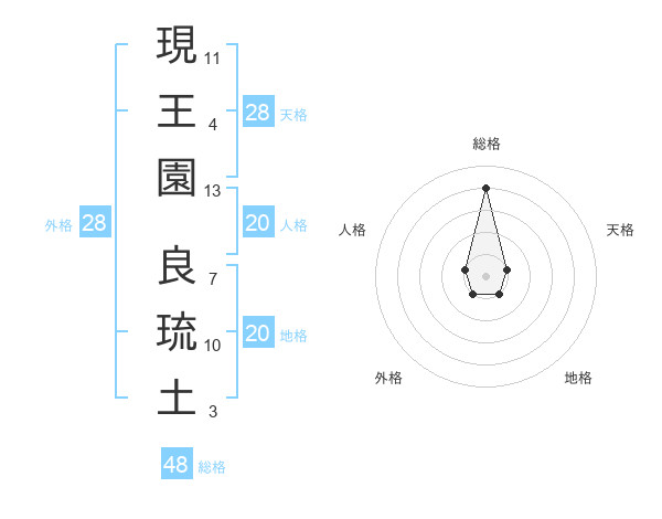 現王園 良琉土さんを姓名の画数から五運を鑑定