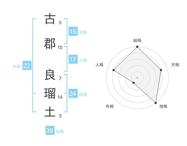 古郡 良瑠土さんの総格は39画の5点!