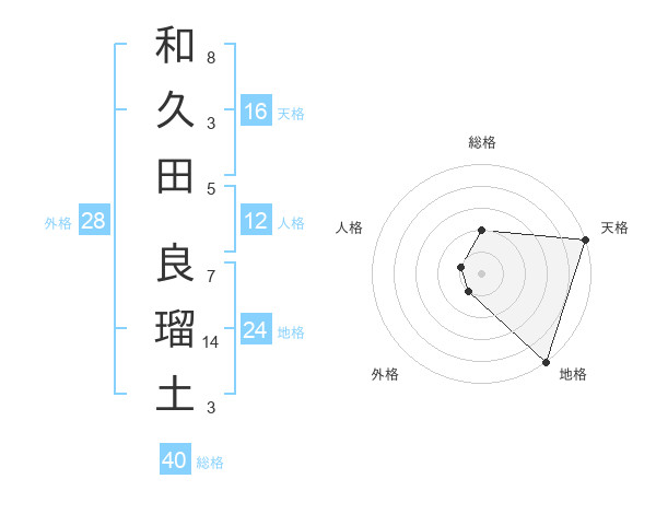 和久田 良瑠土さんを姓名の画数から五運を鑑定