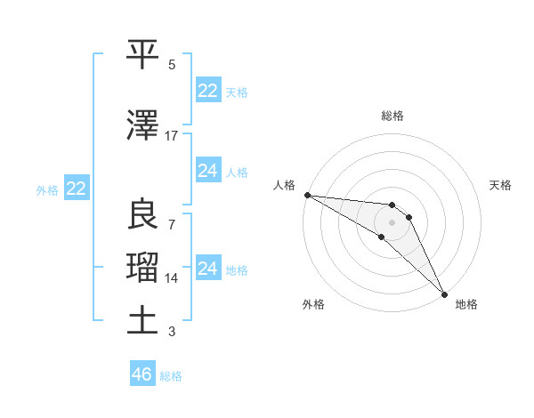 平澤 良瑠土さんを姓名の画数から五運を鑑定