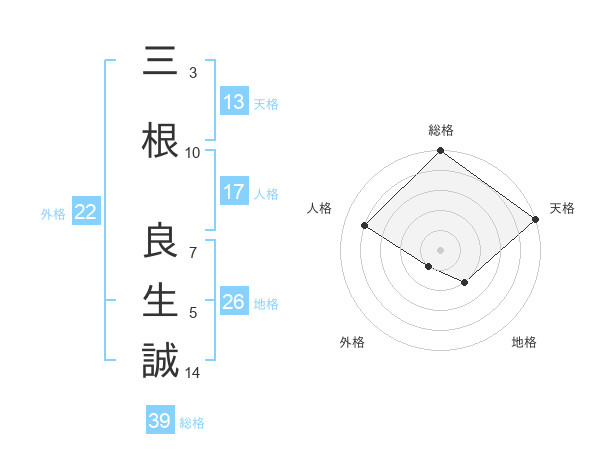 三根 良生誠さんを姓名の画数から五運を鑑定