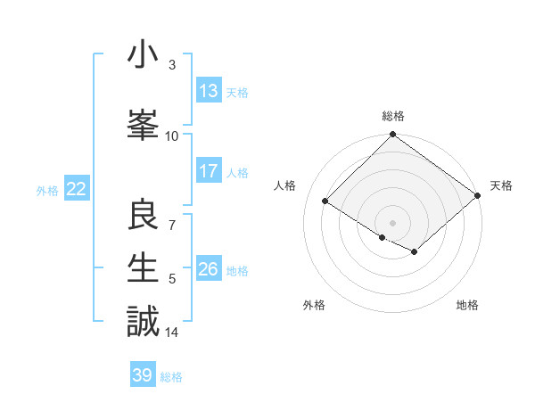 小峯 良生誠さんを姓名の画数から五運を鑑定