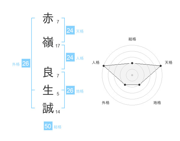 赤嶺 良生誠さんの天格は24画の5点!