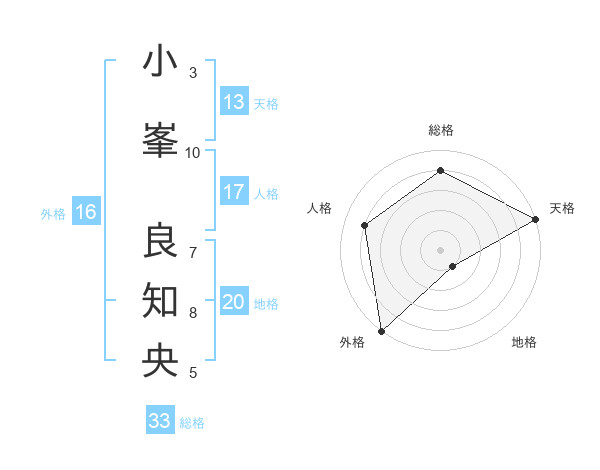 小峯 良知央さんを姓名の画数から五運を鑑定
