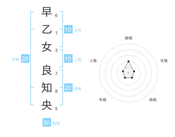 早乙女 良知央さんを姓名の画数から五運を鑑定