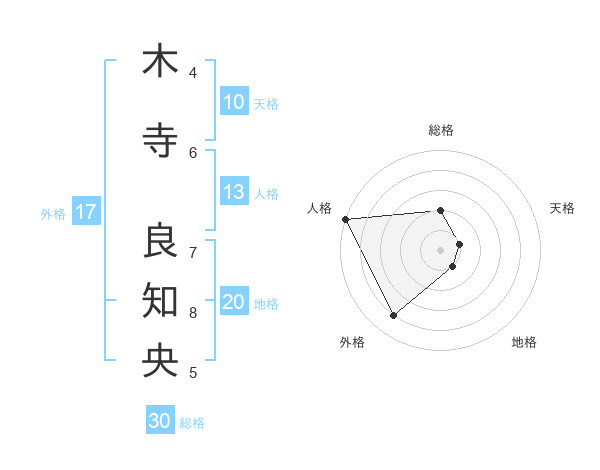 木寺 良知央さんの総格は30画の2点!
