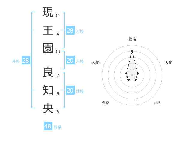 現王園 良知央さんを姓名の画数から五運を鑑定